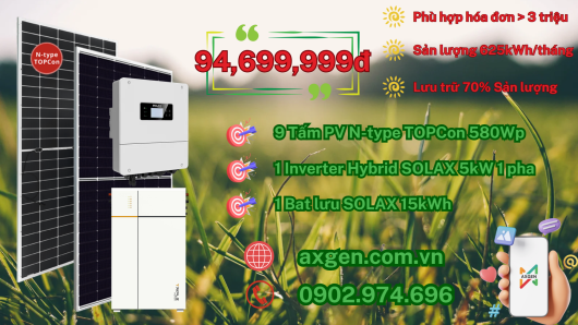 Hệ Thống Hybrid 5.22kWp 5kW 15kWh: Tự Chủ Năng Lượng, An Tâm Cuộc Sống (Phù hợp gia đình sử dụng từ 3tr/tháng)